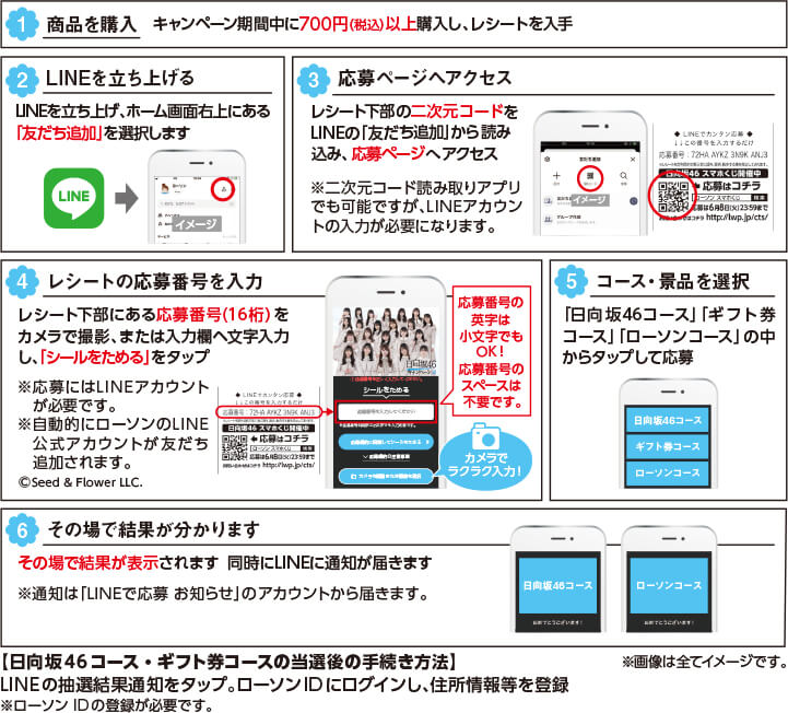 - 6. 郵送景品については、上記時点でローソンIDの住所・氏名・電話番号を正確にご登録いただけない場合は、当選権利が失効となります。